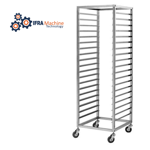 IFRA Trolleys are known for its High Stability and Long Life. Fully welded Joints. Heavy Duty Stainless Steel Trolley to hold the Trays. Strong Rail For supporting the baking trays. Comes with Heat resistant iron Casters. Compatible with Rotery Bread Baking Oven.
